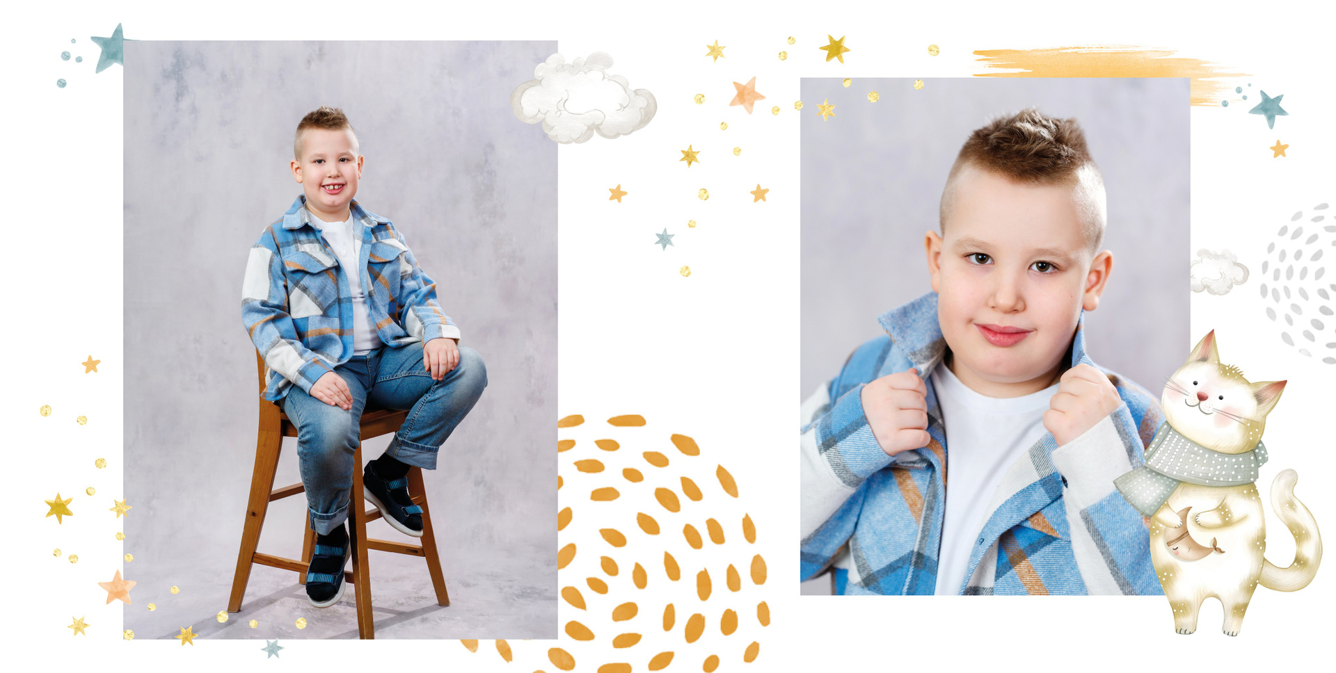 - Портрет + фото с другом или анкета ребенка или рисунок (опционально)