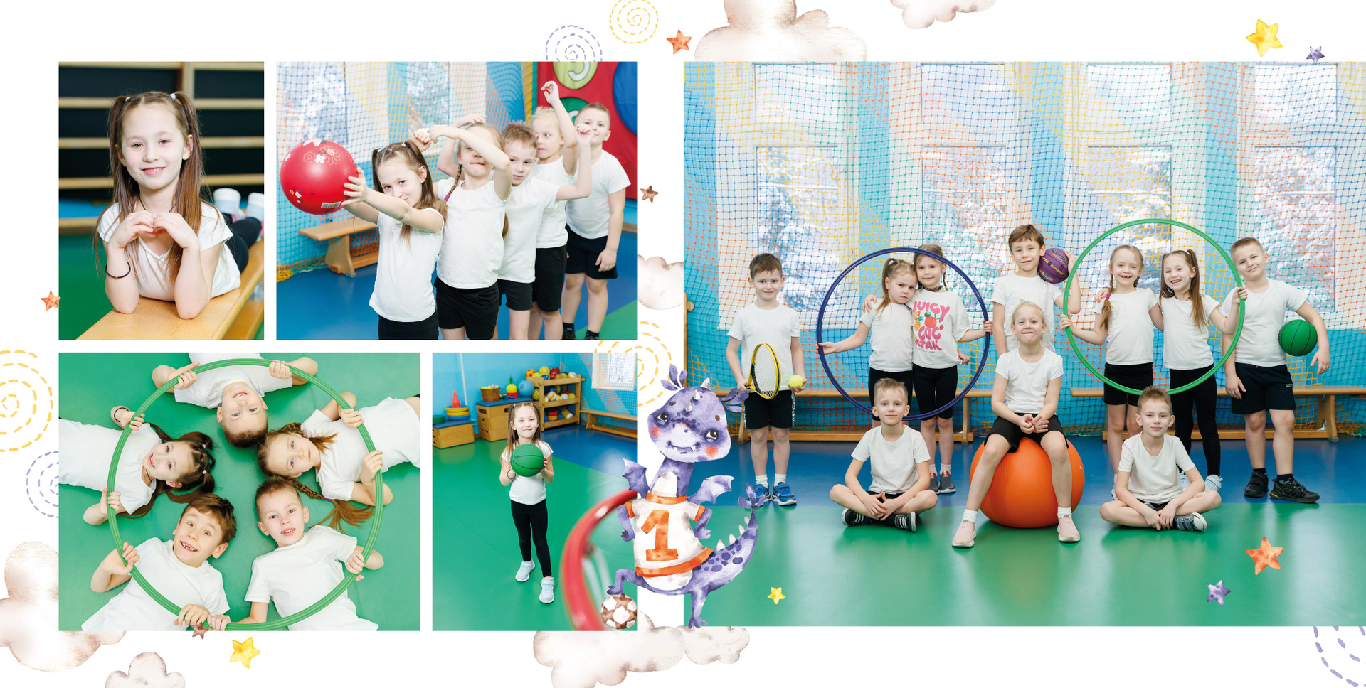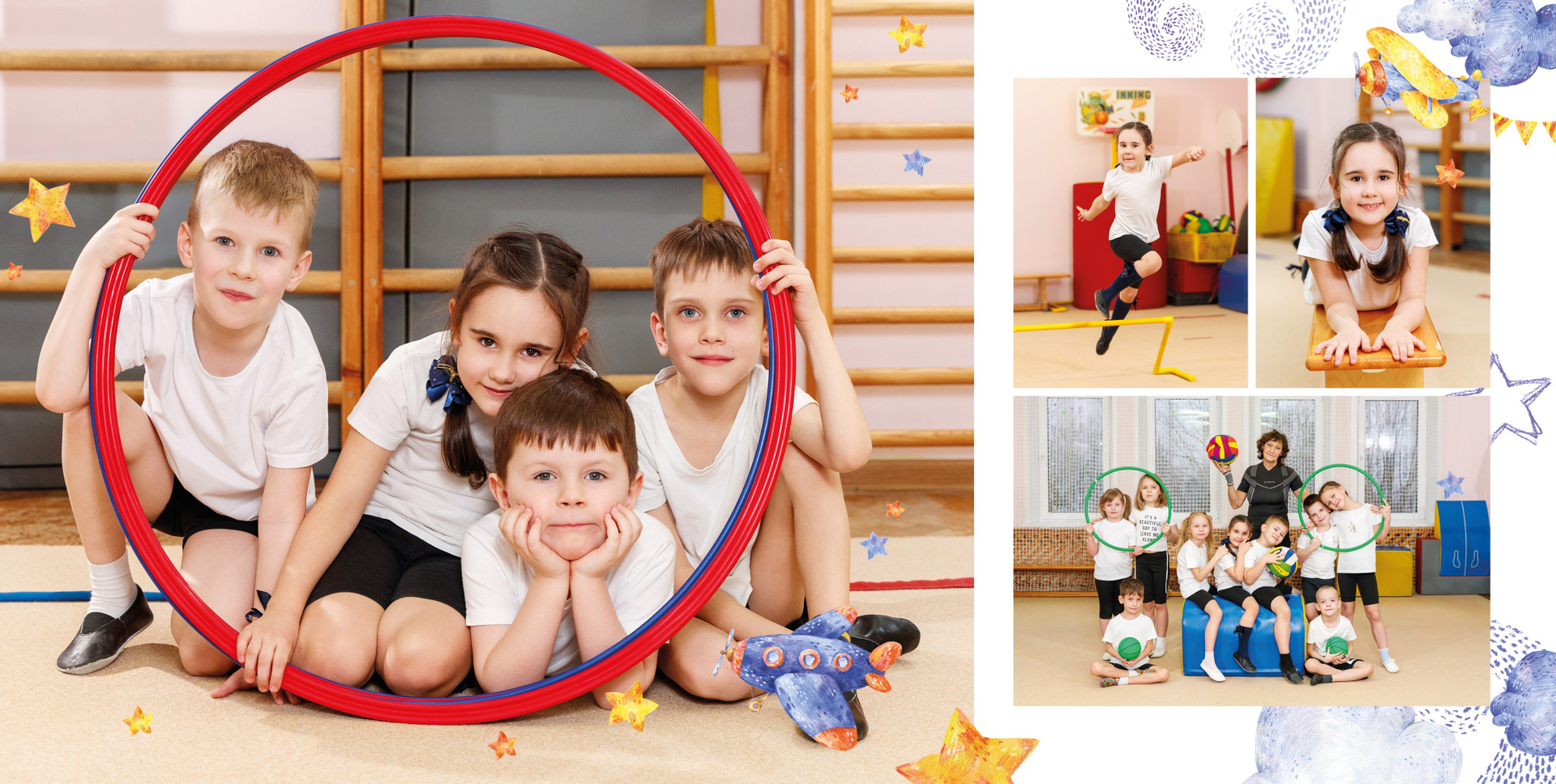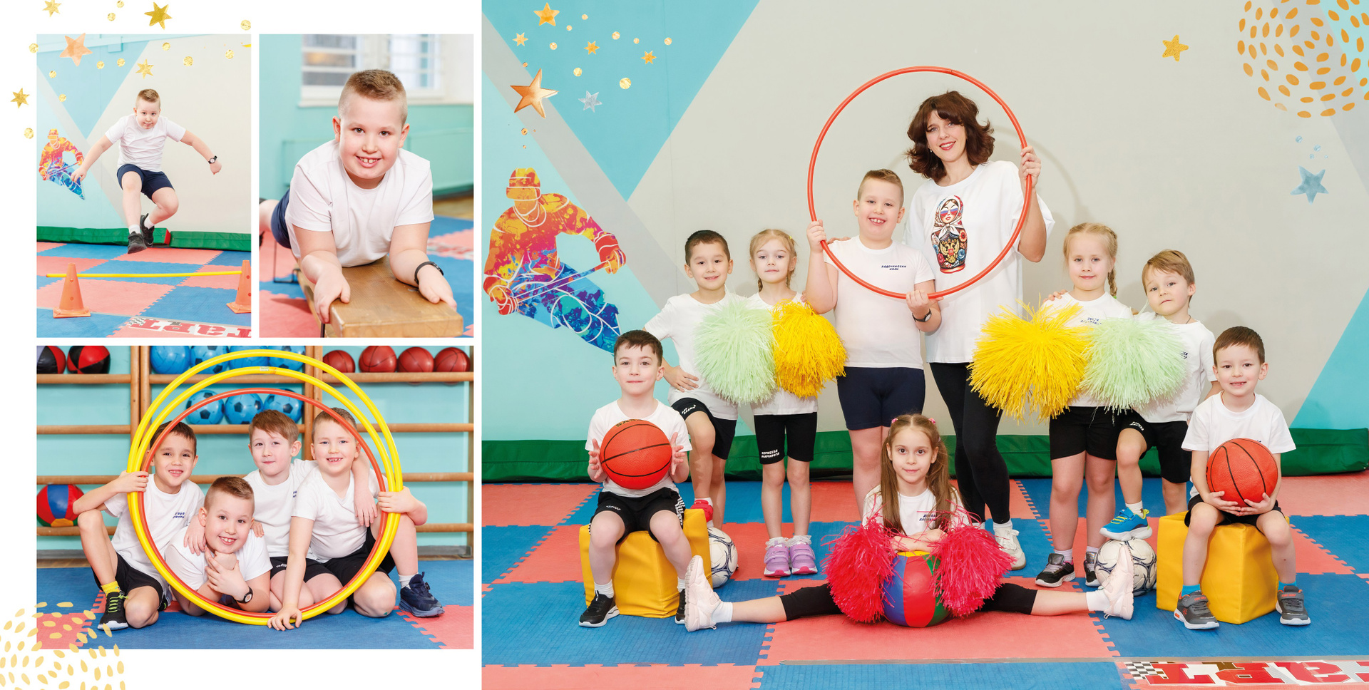 - Индивидуальный разворот с репортажной съемки физкультуры (2-4 фото)