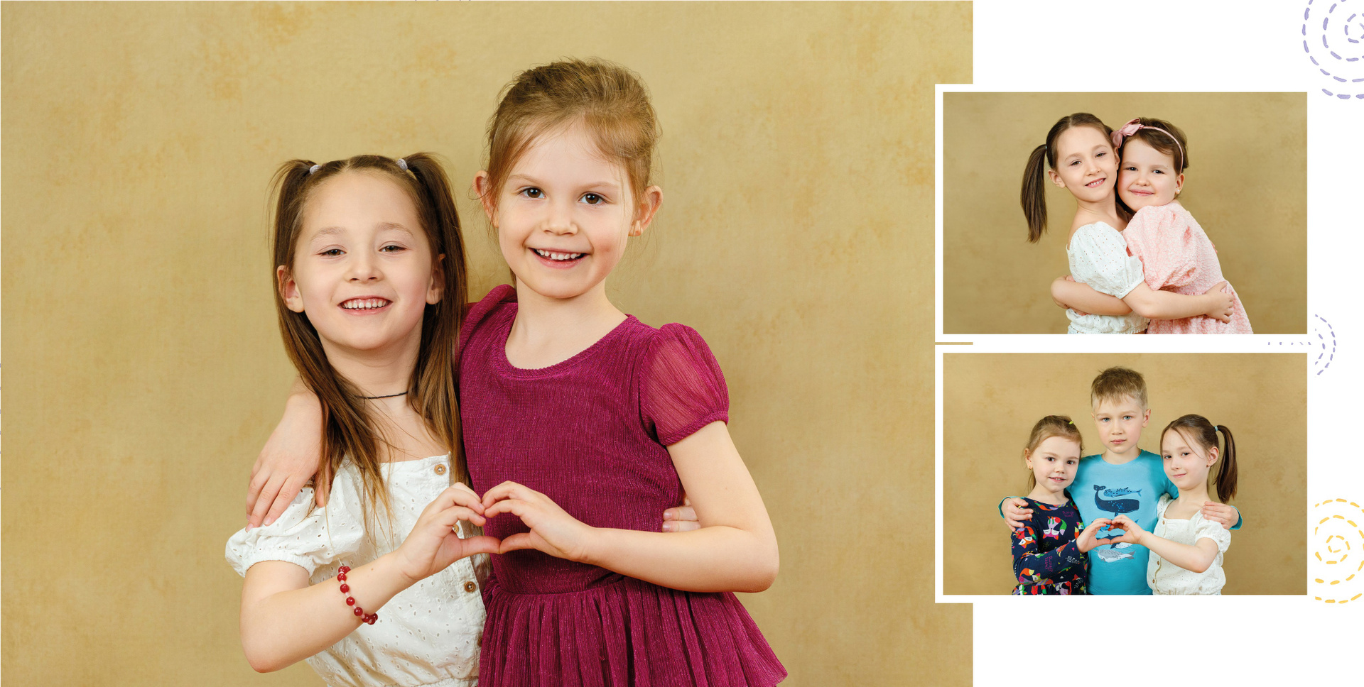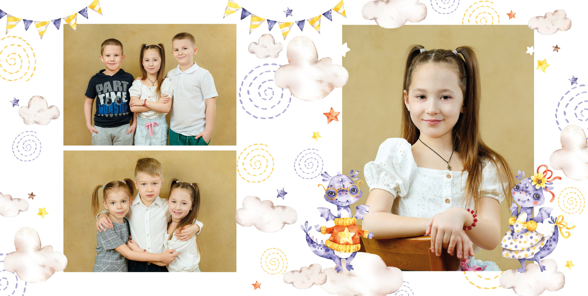 - Индивидуальный разворот с репортажной съемки в группе (2-4 фото)