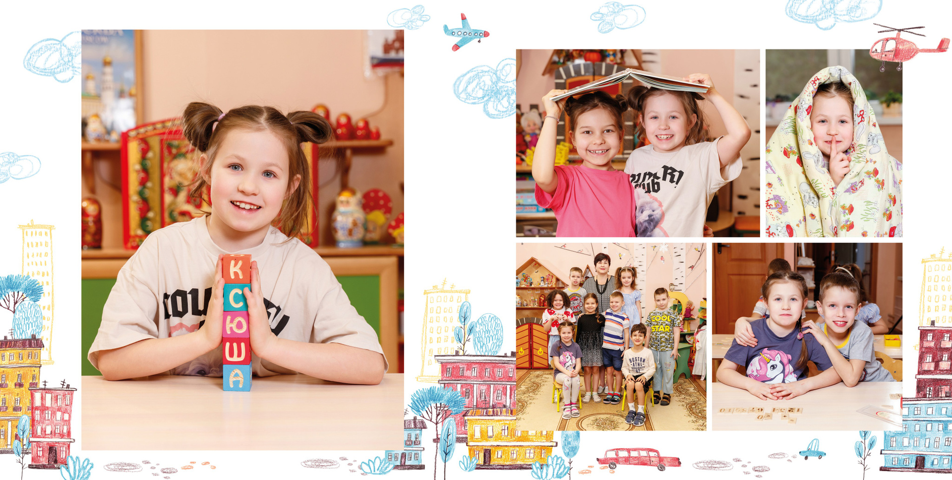 Выпускные альбомы на 5 разворотов, что бы запомнить лучшие моменты в детском саду.